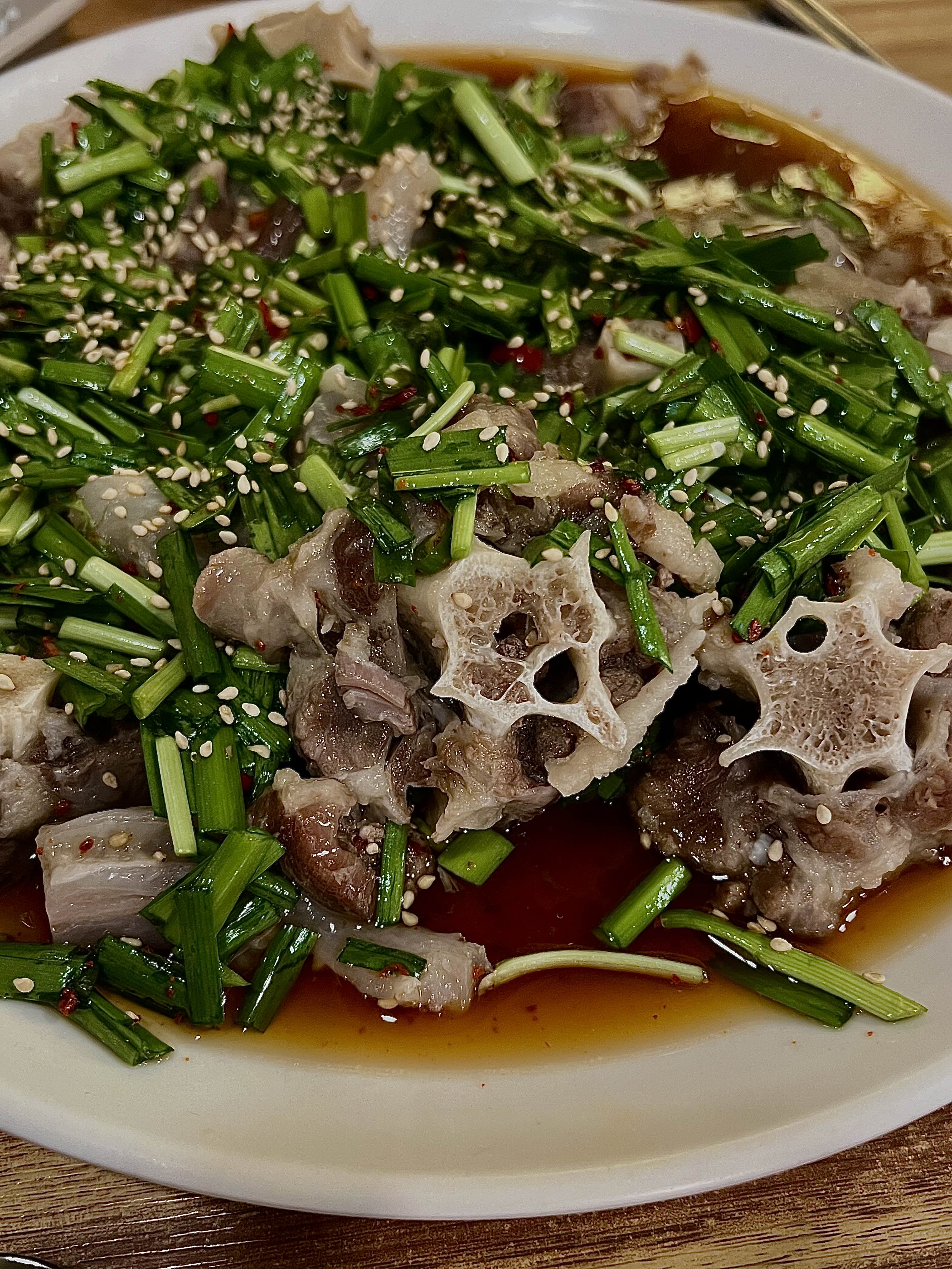 잘게 자른 부추가 소꼬리찜 위에 덮여 나왔고,